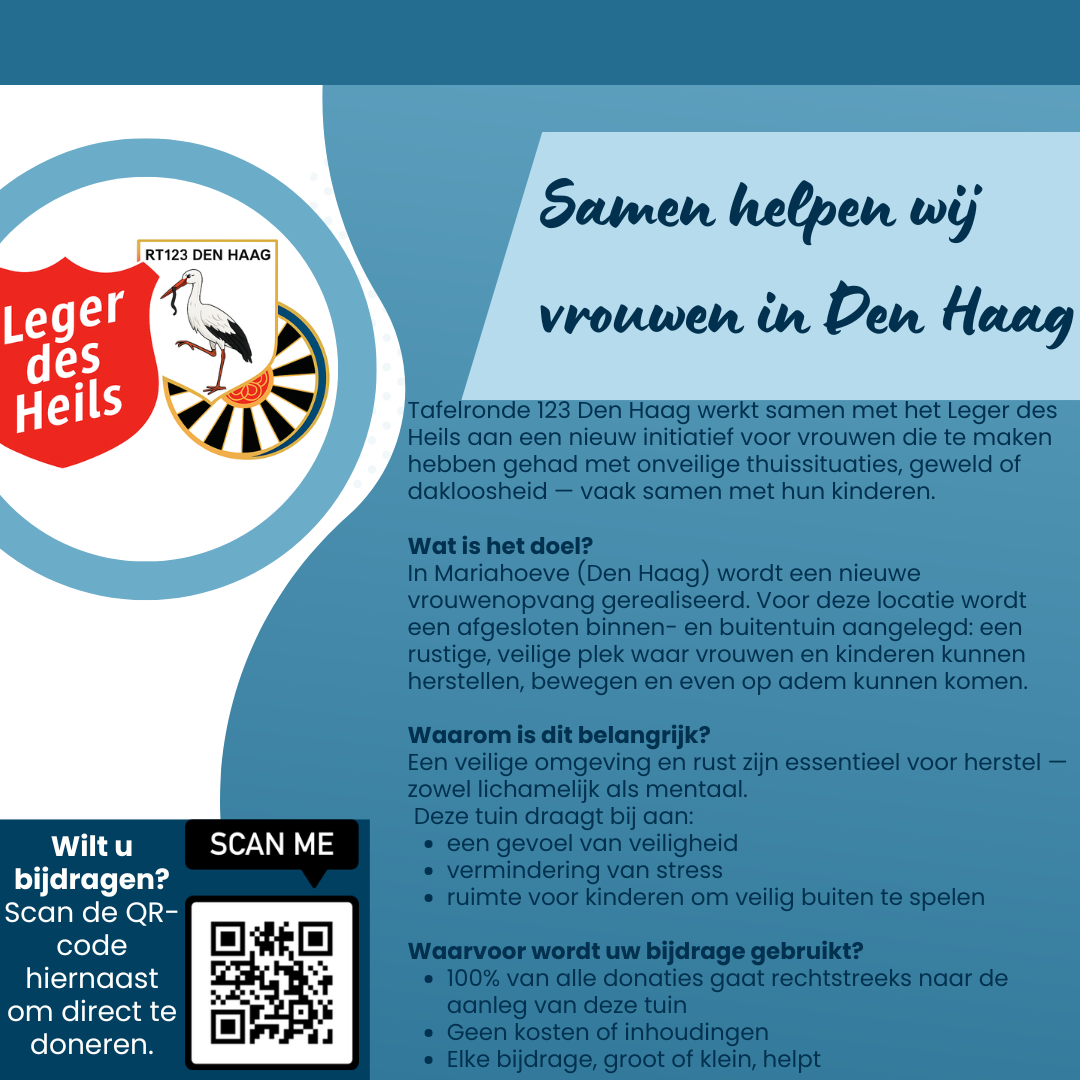 In Mariahoeve (Den Haag) wordt een nieuwe vrouwenopvang gerealiseerd. Voor deze locatie wordt een afgesloten binnen- en buitentuin aangelegd. Hiervoor vragen wij uw bijdrage, 100% van alle donaties gaat rechtstreeks naar de aanleg van deze tuinen!